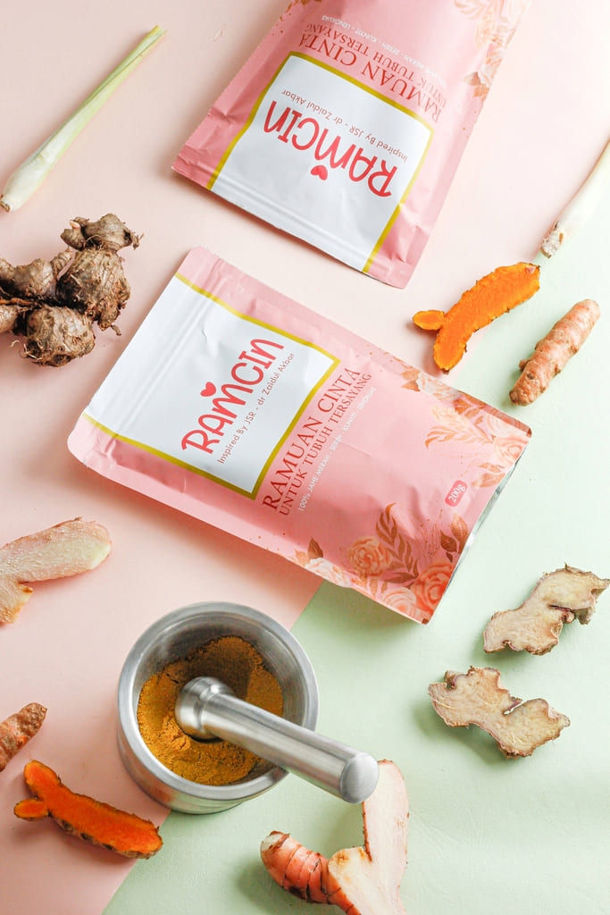 Jahe Merah, Kunyit, Lengkuas, Sereh. Dengan prosentase komposisi yang sudah terukur sehingga khasiatnya bisa maksimal.