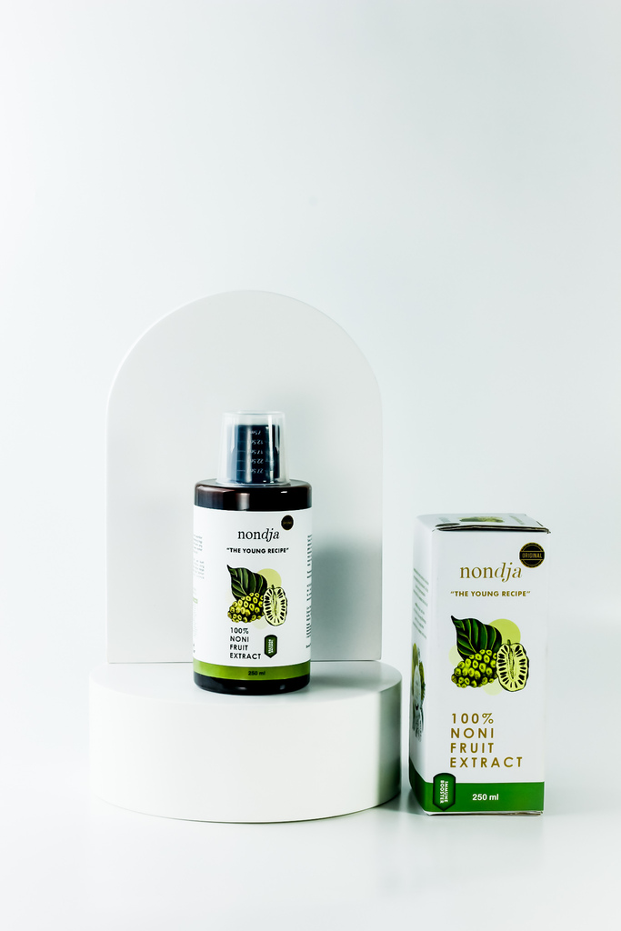 Terbuat dari 100% sari buah Noni asli yang di fermentasikan selama 3 tahun.